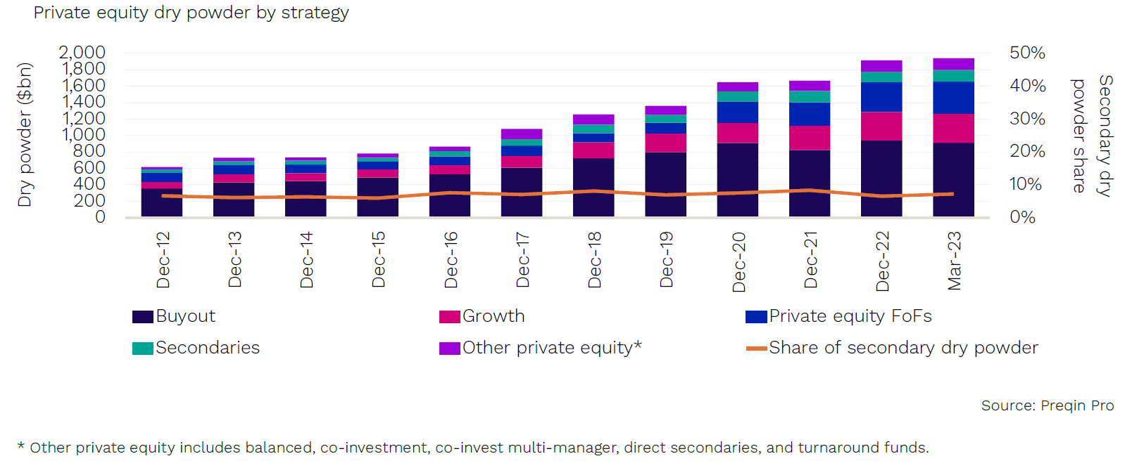 - Private wealth. Private wealth investors are increasingly interested in private equity secondary funds. However, there is a potential concern that investors may end up paying high prices for exposure, despite pricing discrepancies between public and private markets. Nonetheless, the development of distribution channels into the private wealth space is expected to drive fundraising in private capital markets.
